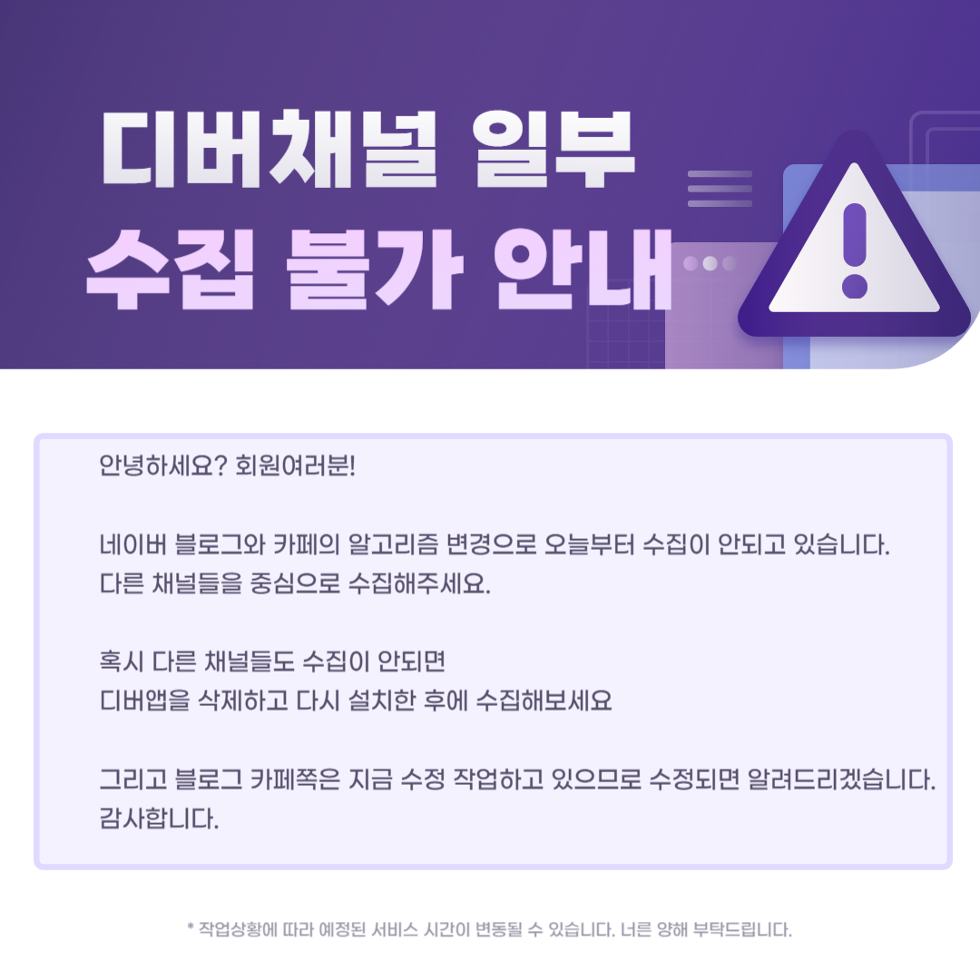 공지 [제240201-01호] 디버 채널중 일부 수집 불가 공지